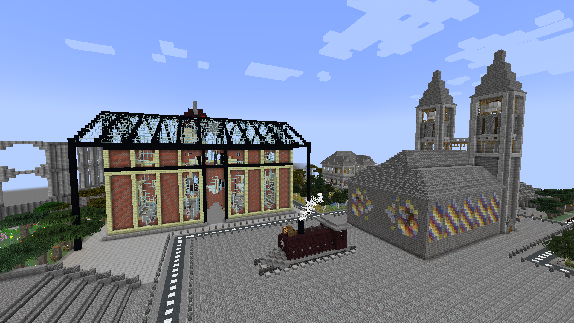 Glavni kolodvor in Captivusova maketa parne lokomotive, postavljena na mestu prvotnega Glavnega kolodvora