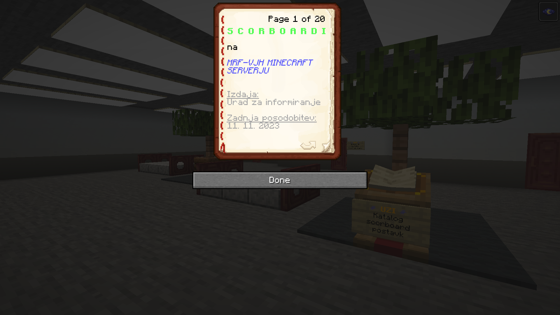 Urad za informiranje je izdal katalog scorboard postavk. Gre za razgrnitev informacij javnega značaja. Scorboard postavke so posebni komandni sistemi, s katerimi ima stik prav vsak igralec na serverju. Urad za informiranje s temi postavkami večinoma preko avtomatiziranih sistemov, redkeje pa tudi ročno, manipulira in preko njih od in-game oseb dobiva vpogled v marsikatere podatke (npr. je oseba na serverju ali ne, je oseba v neki stavbi ali ne, kakšno je finančno stanje in stanje varčevalnih računov, kakšno je stanje poštnih predalov, vozovnic, vinjet, letalskih kart, itd.). Zaradi transparentnosti poslovanja in rokovanja s podatki je UZI sklenil pripraviti javno dostopen katalog scorboard postavk. Ta se sproti posodablja. In-game verzija je dostopna na sedežu Urada za informiranje v Vidovem, online verzija pa na podstrani Urada za informiranje TUKAJ. Prvo verzijo pa objavljamo tudi v tej objavi, spodaj.